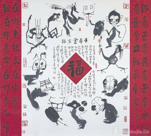 嚴學章曾于中原羑里城參悟十數年,創“易畫”之法。易畫以易經六爻卦為構架,以地支生肖為藝象,以頌辭對聯題跋為文理,是易經文化、生肖文化、書畫文化、福文化、聯賦文化與傳統民俗文化的融合體。“易馬”篇即易畫專題篇,踐行“以我為根”的藝術主張。