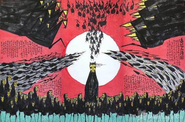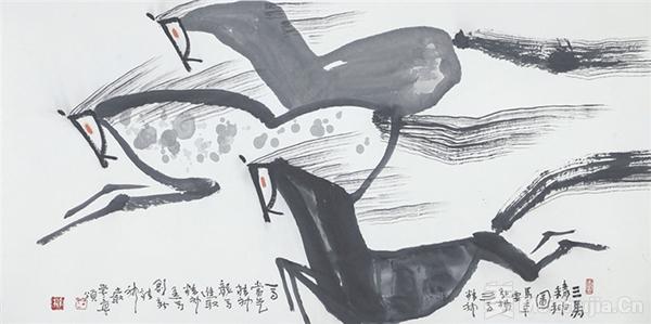 “異”是突破亦是包容。蟹派藝術既發揚詩書畫三位一體的筆墨精神,抵制殖民式筆墨泛素描化,更以開放心態廣收博取,借筆墨意構的獨特創造,形成專屬藝術符號系統。“異馬”篇即通變創新篇,倡導“以西為用”的融合路徑。
