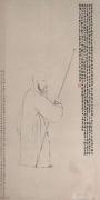 仔細品讀金農的《自畫像》,會發現其中蘊含著他全部的藝術哲學。畫家以渴筆焦墨勾勒人物形象,線條生拙簡樸,脫胎于南宋馬和之的“蘭葉描”。人物的頭部描繪寫實,長髯、發辮、雙目皆細致傳神,展現出金農奇倔傲世的性格;而身體部分卻極盡夸張,近乎漫畫造型,這是文人畫家“逸筆”的自覺追求。最微妙的是,老者右足微露紅鞋一角,這一細節被后世解讀為“踏破紅塵”的意象,成為其超然人生態度的點睛之筆。畫中的題款采用典型的寫經體楷書“長題”,與畫像本身共同構建出拙樸奇絕的視覺整體。這幅作品不僅是對容貌的記錄,更是一份關于自我身份與藝術追求的深刻宣言。